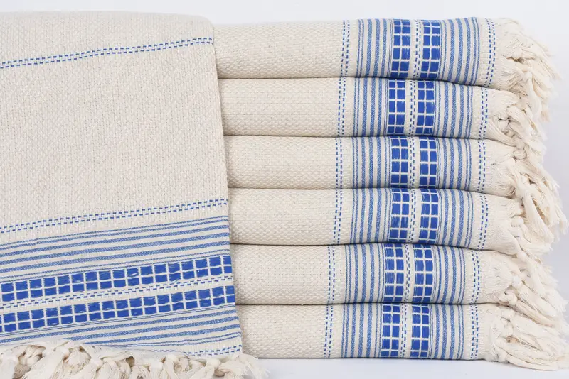 The Turkish beach blanket, categorized under blankets and throws, is composed entirely of natural linen. This material ensures excellent absorbency and comfort, resulting in a cozy addition to any home. The dimensions of the blanket are 95 inches by 93 inches, or 240 centimeters by 235 centimeters, with a tolerance of 1-2.5 centimeters due to hand-weaving. Its weight is 1160 grams, contributing to a robust yet soft texture.