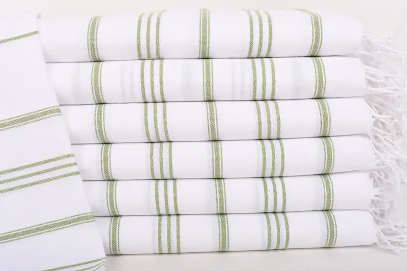 Turkish cotton towels, characterized by their organic and recycled material composition, ensure superior absorbency and durability. Each 40"x24" (100x60 cm) tea towel weighs 100 grams or 3.5 ounces, with allowable weaving tolerances of up to 1-2.5 cm. Embroidery customization options are available, allowing for personalized monograms or messages, enhancing their utility and sentimental value.