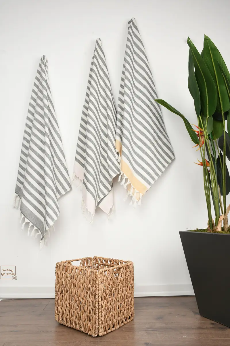 Turkish cotton material ensures high absorbency and durability for everyday use. The towels, characterized by their 67x40 inches (170x100 cm) dimensions and weighing 422 grams, are meticulously hand-woven, resulting in minor tolerances of 1-2.5 cm. Embroidery customization is available for personalization, with pre-shrunk status for consistent sizing. Offering free express shipping on U.S. orders and for international orders over $100 USD, returns are not accepted for personalized items.