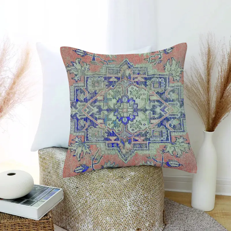 Almohada bordada del suroeste hecha a mano, almohada de tiro vintage
