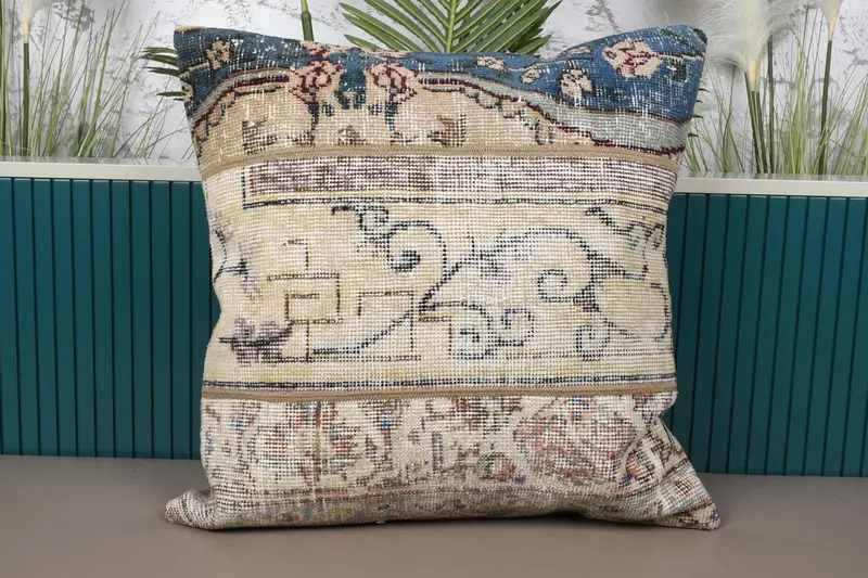 Beige, almohada de tiro patchwork de bronce, cojín hecho a mano 24x24
