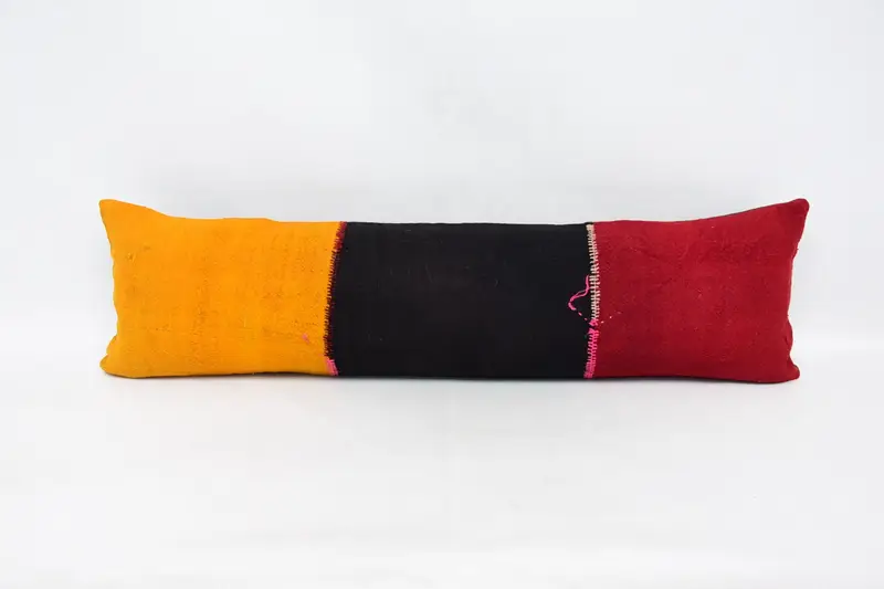 Almohada de tiro de rayas naranja y roja, almohada de cáñamo hecha a mano de 12x42