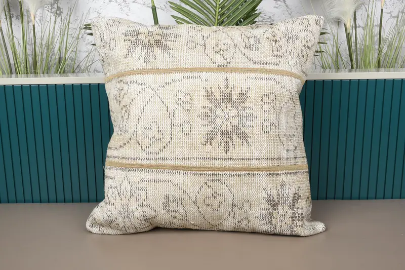 Almohada de lanzamiento de patchwork beige y marrón, cojín bordado 24x24