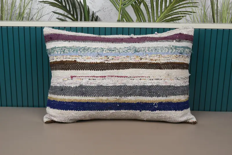 Almohada de rayas beige y bronce, almohada de lanzamiento bordada de 16x24