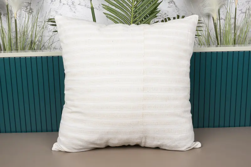 Almohada de tiro de lino bordado, cojín de rayas vintage