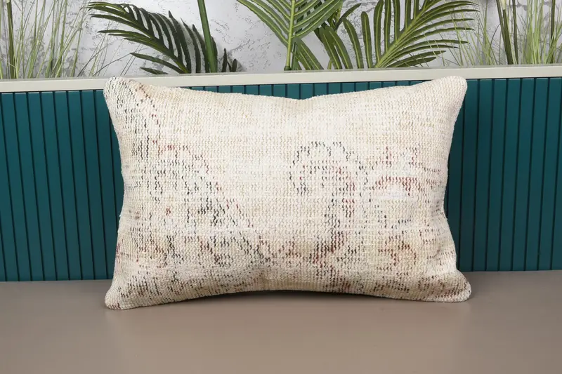Almohada de tiro del suroeste beige, almohada rectangular bordada vintage