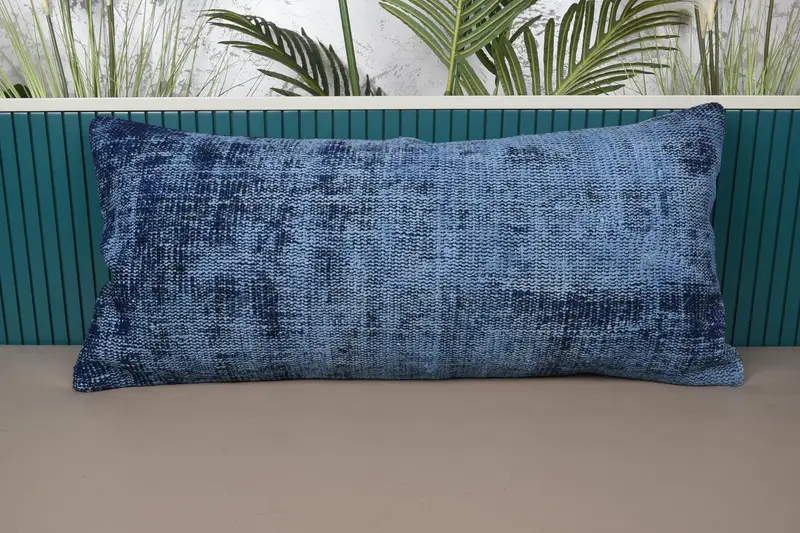 Almohada de lanzamiento bordada del suroeste azul, cojín rectangular vintage