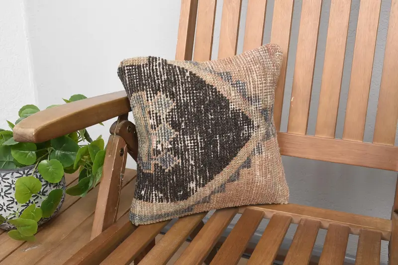 Almohada de tiro bordada marrón y naranja, almohada geométrica hecha a mano