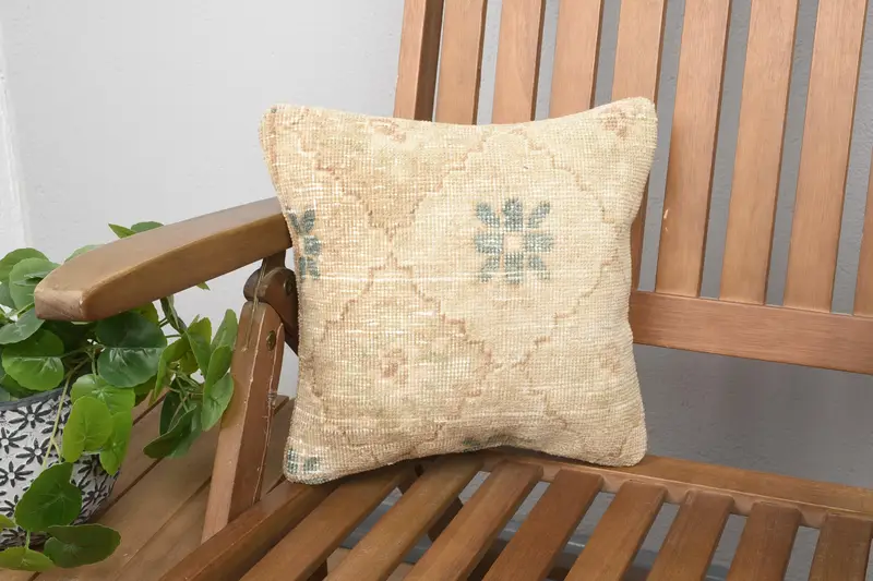 Almohada de lanzamiento floral beige y verde, cojín bordado 12x12