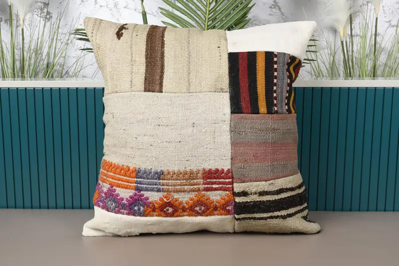 Almohada de tiro bordada hecha a mano, cojín de patchwork vintage