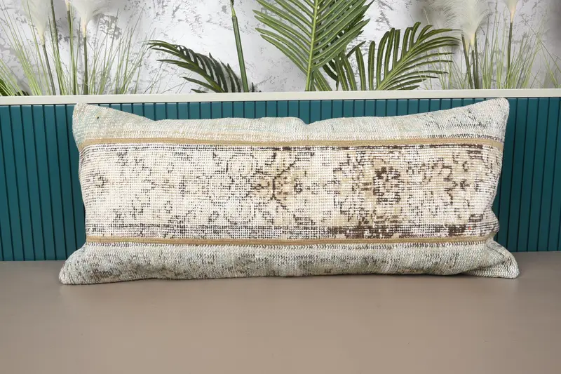 Almohada de lanzamiento Kilim tejida a mano, cojín bordado en beige y marrón