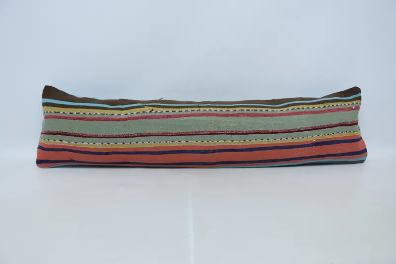 Almohada de tiro a rayas hecha a mano, cojín vintage verde y rojo
