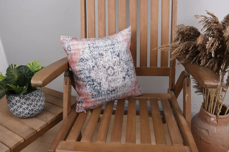 Almohada de tiro de lino rojo con bordado floral de bronce, almohada cuadrada vintage