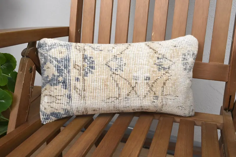Almohada de tiro floral beige y gris bordada, almohada rectangular versátil