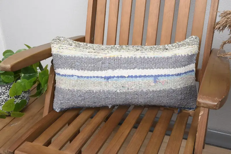 Almohada de tiro a rayas hecha a mano, cojín de lino bordado 10x20