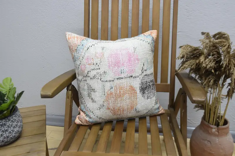 Almohada de lanzamiento floral vintage suave, cojín de lino bordado