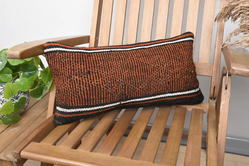 Almohada de tiro bordada naranja y blanca, cojín geométrico hecho a mano