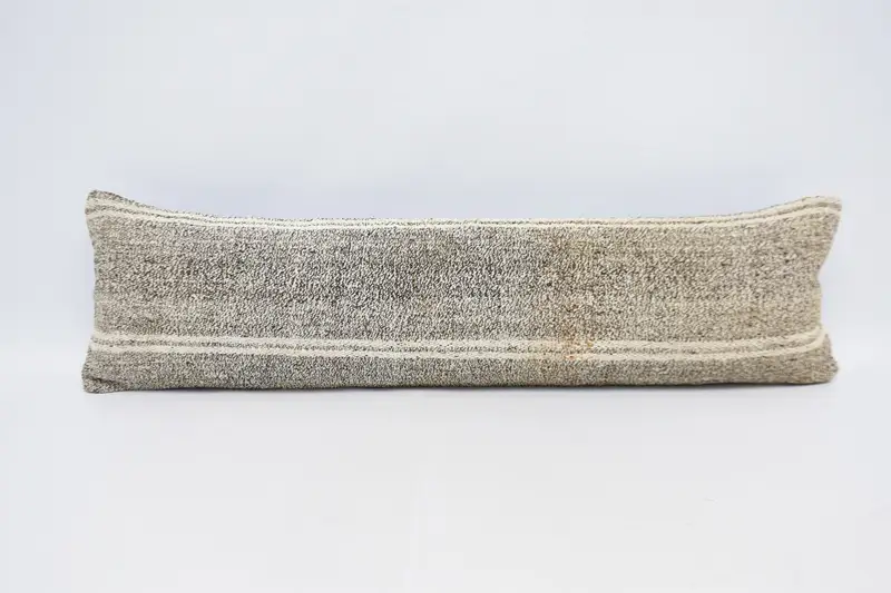 Almohada de tiro a rayas hecha a mano, almohada rectangular marrón y blanca