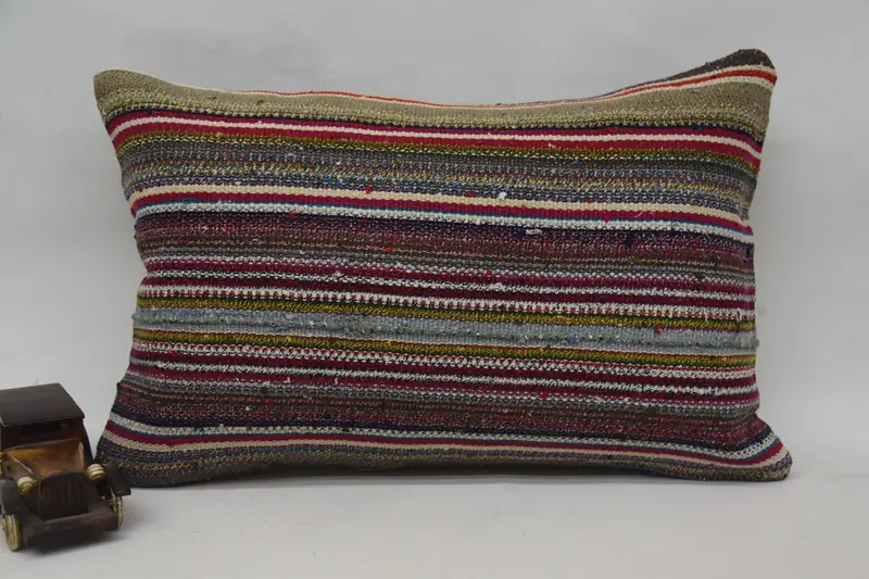 Almohada de tiro de rayas rojas y amarillas, cojín bordado hecho a mano