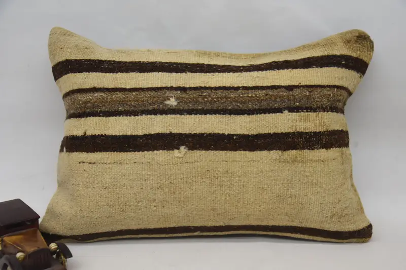 Almohada de tiro a rayas beige y marrón, cojín versátil de 16x24