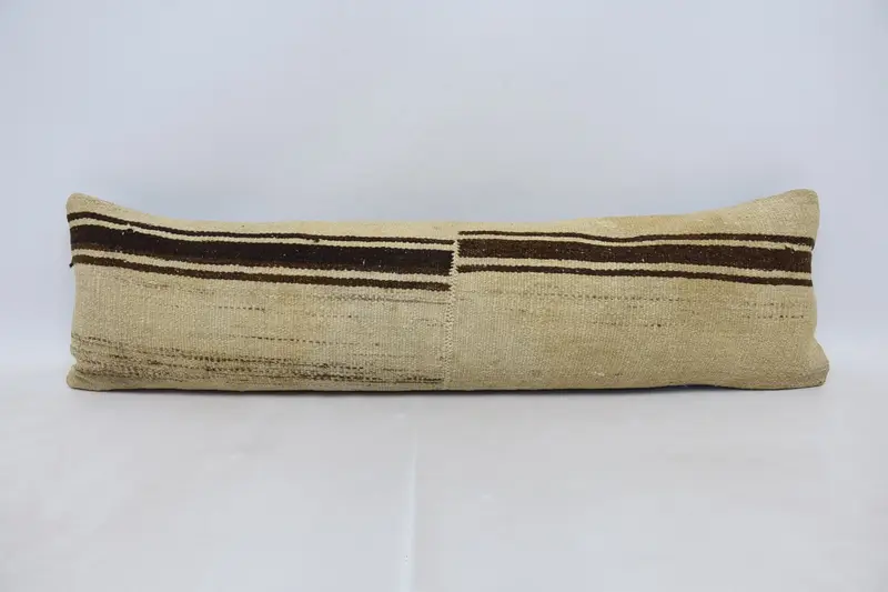 Cojín de rayas beige y marrón, almohada de lanzamiento rectangular hecha a mano