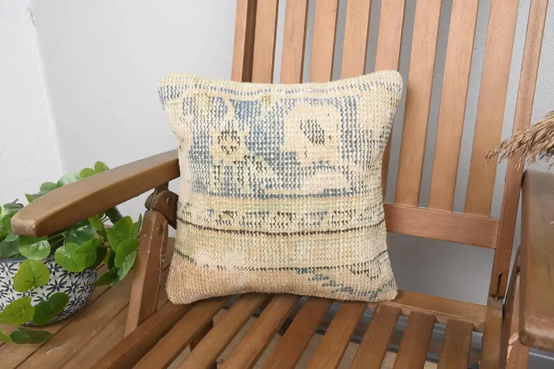Almohada floral verde y naranja hecha a mano, almohada de tiro bordada 14x14