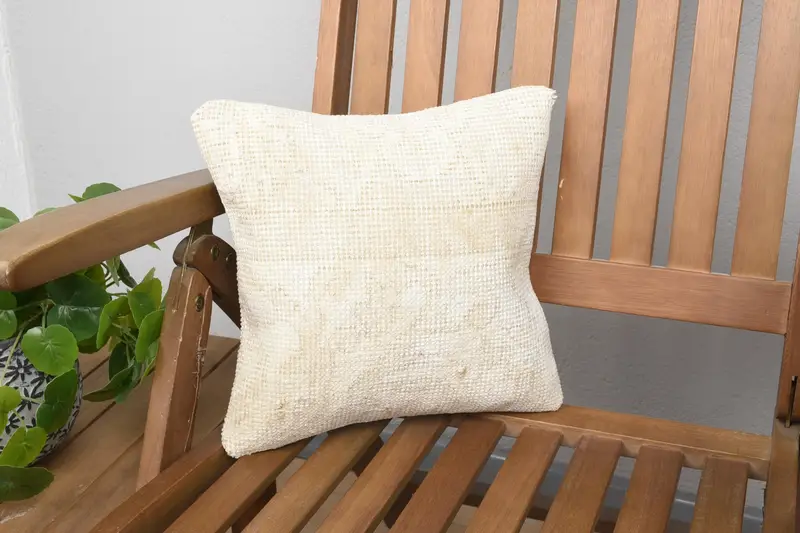 Almohada de tiro bordada hecha a mano, almohada de lino beige vintage