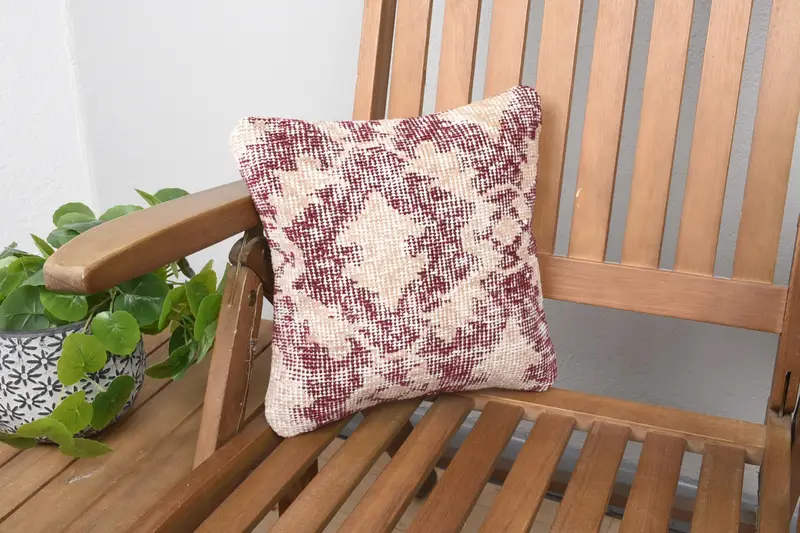 Almohada de tiro geométrica 12x12, cojín bordado beige y rojo