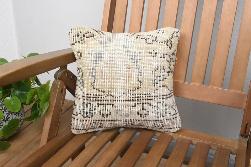Almohada bordada floral naranja y verde, almohada de tiro hecha a mano de 12x12