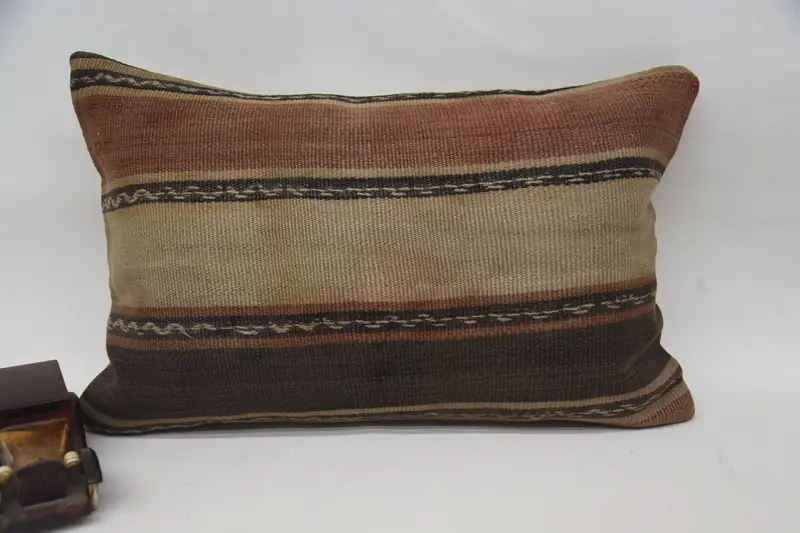 Cojín a rayas beige y marrón, almohada versátil de 16x24