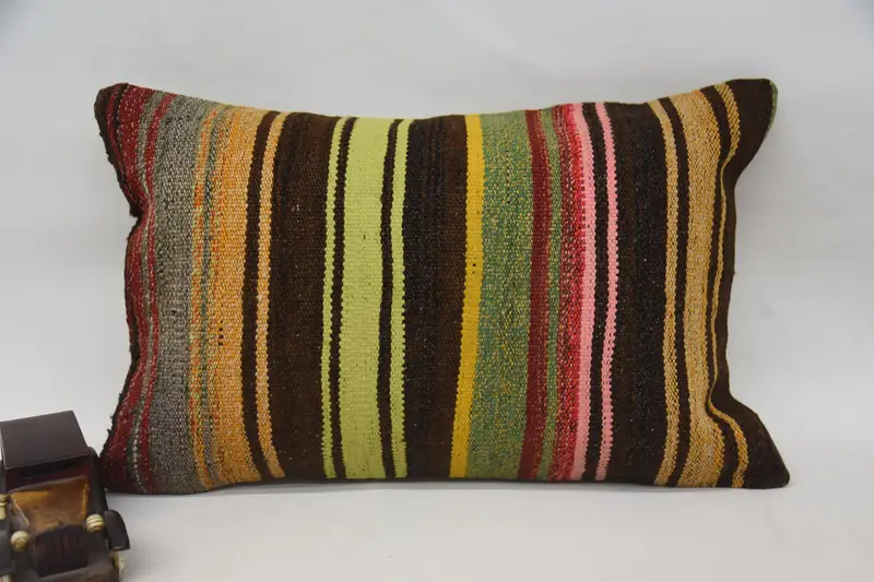 Funda de almohada a rayas hecha a mano, almohada de lanzamiento bordada vintage