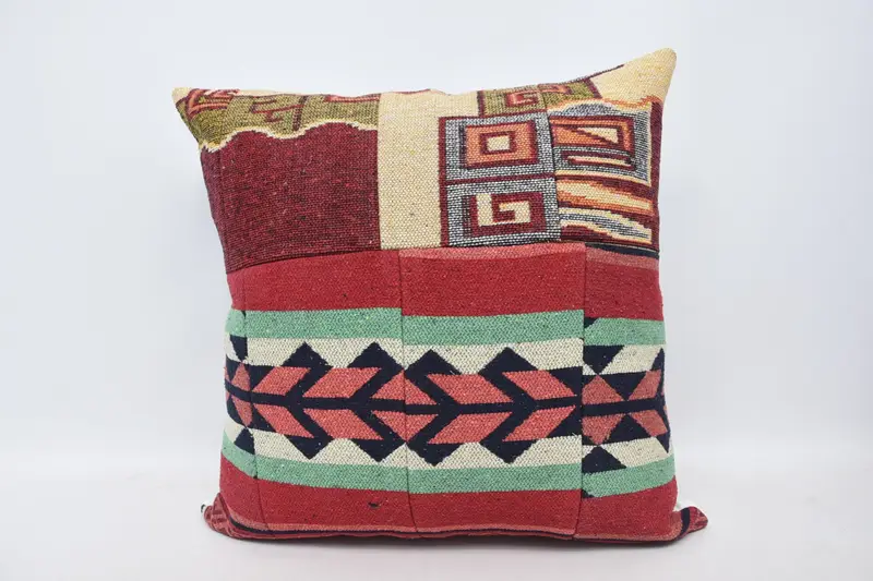 Almohada de lanzamiento bordada roja y verde 28x28, cojín vintage