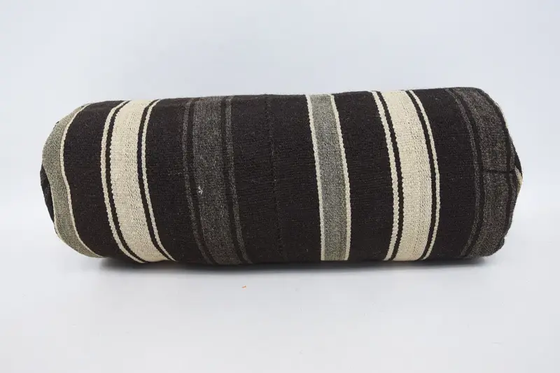 Almohada de tiro bordada marrón y gris hecha a mano, cojín vintage