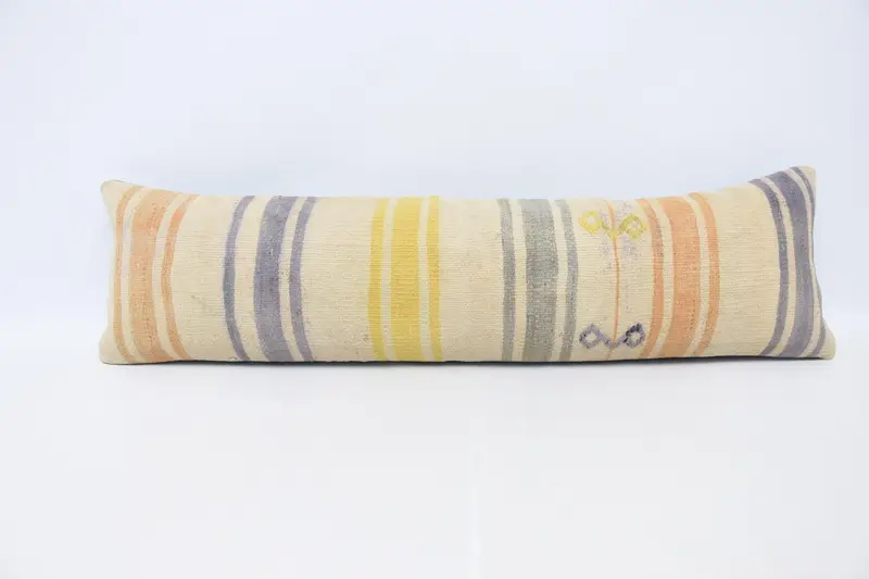 Almohada de tiro bordada beige y naranja, almohada de lino hecha a mano