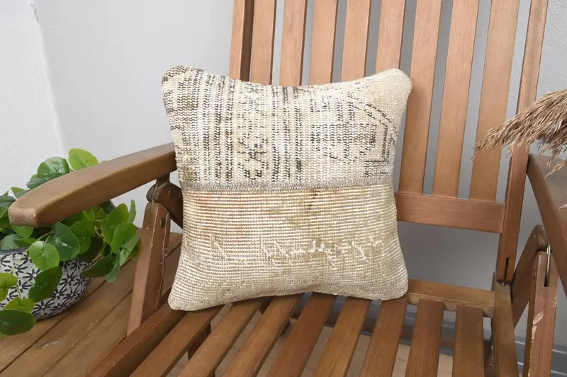 Almohada de lanzamiento de patchwork beige y marrón, cojín bordado vintage