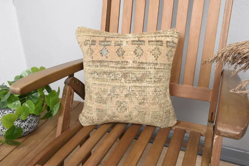 Almohada de tiro de lino geométrico naranja y marrón, cojín bordado vintage