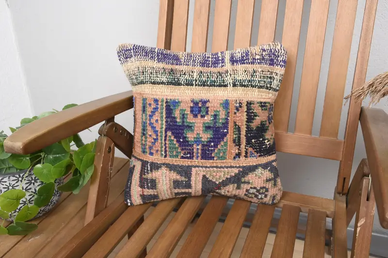 Almohada de lanzamiento de patchwork azul y naranja, cojín vintage bordado