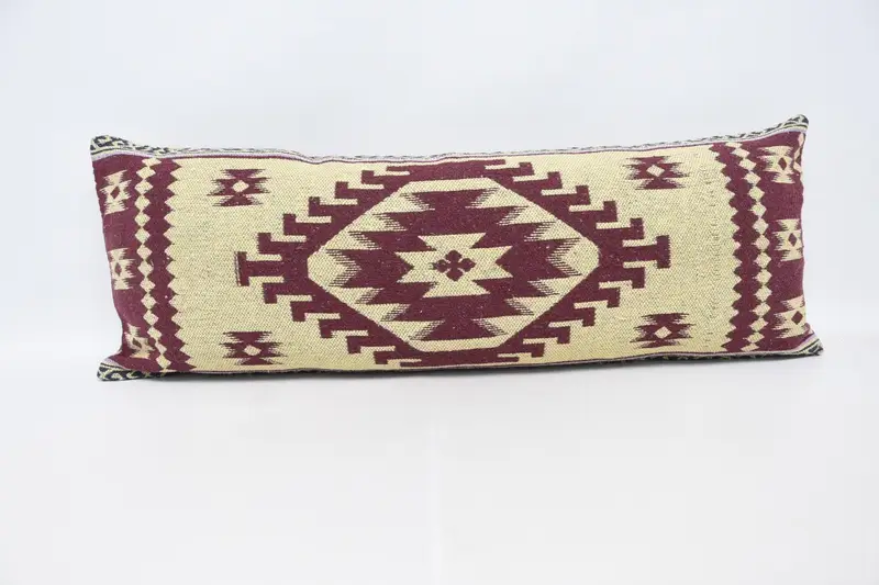 Almohada de lanzamiento bordada marrón y roja, almohada geométrica vintage