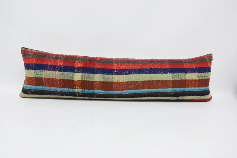Almohada de tiro a rayas rojas y marrones, cojín hecho a mano de 12x42