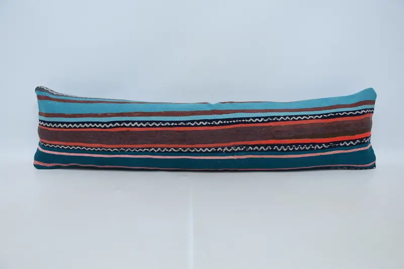 Almohada de tiro de cáñamo a rayas azules y marrones, cojín rectangular vintage