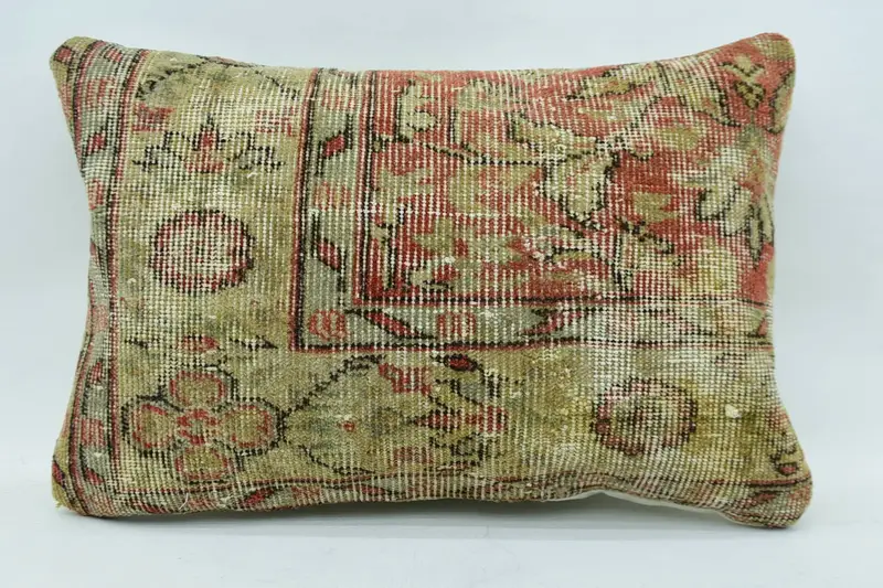 Almohada de tiro Paisley beige y rojo, almohada de lino hecha a mano 24x16