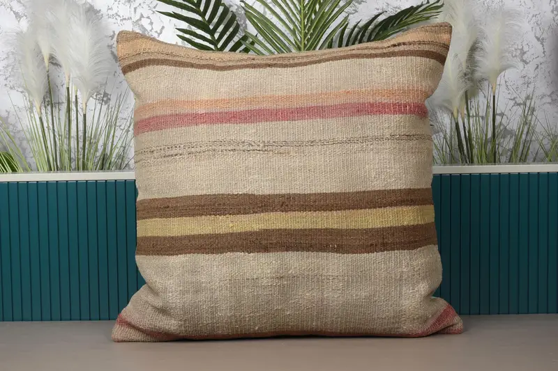 Almohada de lanzamiento de patchwork beige y marrón, almohada bordada vintage