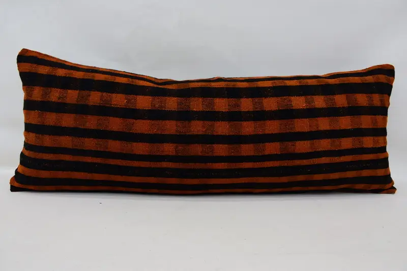 Cojín de rayas naranja y marrón, almohada de lanzamiento bordada hecha a mano