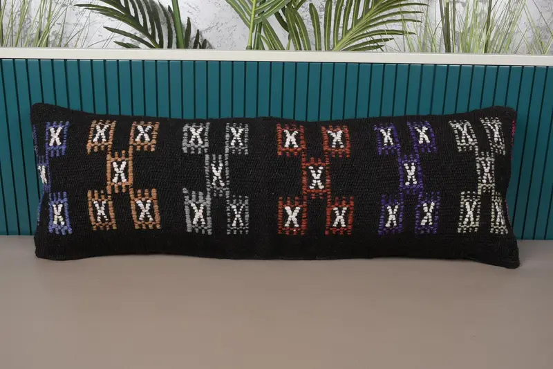 Almohada de lanzamiento rectangular azul del suroeste, cojín bordado vintage