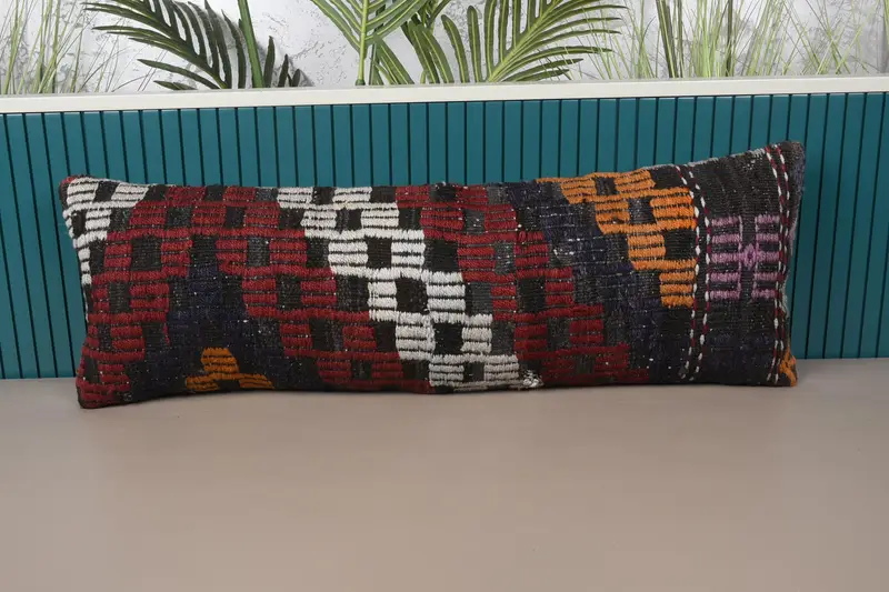 Almohada bordada del suroeste rojo, almohada de tiro vintage hecha a mano de 12x36