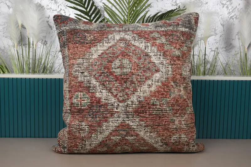 Almohada de lanzamiento bordada del suroeste rojo, cojín vintage hecho a mano