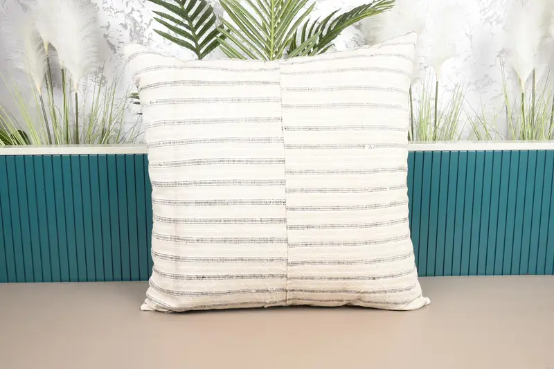Almohada de tiro patchwork beige y marrón, cojín hecho a mano 28x28