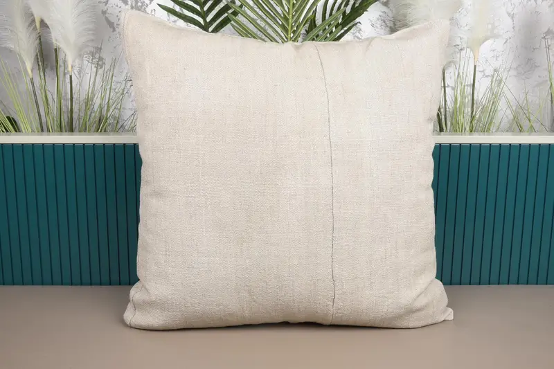 Almohada de tiro patchwork beige, cojín vintage bordado