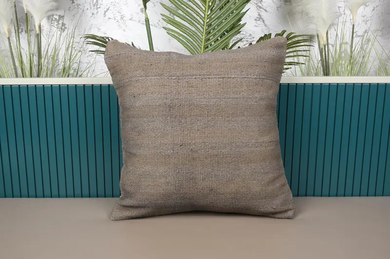 Almohada de tiro de lino marrón bordado, cojín de rayas vintage