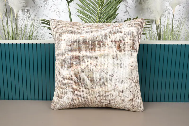 Almohada de tiro del suroeste beige y marrón, cojín bordado vintage